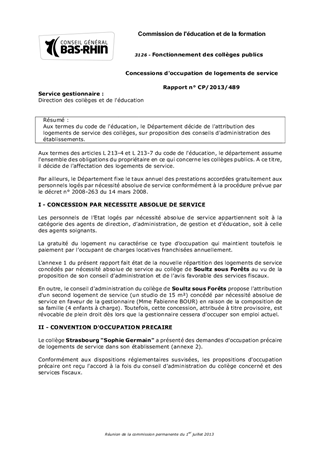 Aux termes du code de l'éducation, le Département décide de l'attribution des logements de service des collèges, sur proposition des conseils d'administration des établissements.