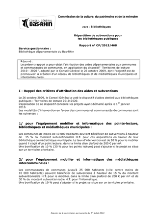 Le présent rapport a pour objet l'attribution des aides départementales aux communes et communautés de communes, en application du dispositif ' Territoires de lecture 2010 - 2020 ', adopté par le Conseil Général le 26 octobre 2009, dont l'objectif est de promouvoir la création d'un réseau de bibliothèques et de médiathèques municipales et intercommunales.