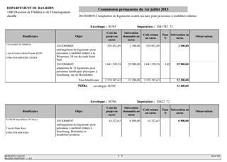 Le présent rapport concerne les demandes d'aide financière présentées par CUS Habitat, Habitation Moderne et Immobilière 3F Alsace concernant la réhabilitation de logements locatifs adaptés au handicap et/ou à la perte d'autonomie, dans le cadre de leur convention relative à l'adaptation des logements à la perte d'autonomie.