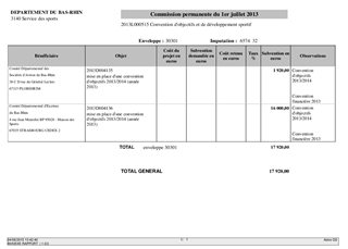 Aide aux manifestations sportives, à l'acquisition de matériel sportif, à la licence (clubs sportifs), aux conventions d'objectifs et de développement sportif et à l'Association de la Maison départementale des sports