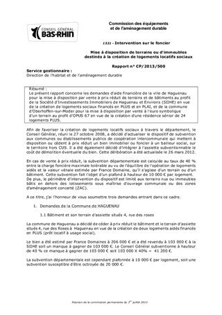 Le présent rapport concerne les demandes d'aide financière de la ville de Haguenau pour la mise à disposition par vente à prix réduit de terrains et de bâtiments au profit de la Société d'Investissements Immobiliers de Haguenau et Environs (SIIHE) en vue de la création de logements sociaux financés en PLUS et en PLAI, et de la commune d'Oberhoffen-sur-Moder pour la mise à disposition par vente à l'euro symbolique d'un terrain au profit d'OPUS 67 en vue de la création d'une résidence sénior de 24 logements PLUS.