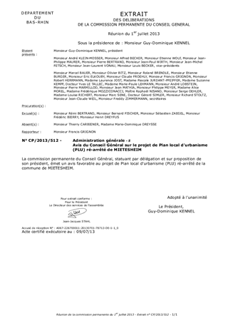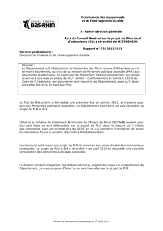 Avis du Conseil Général sur le projet de Plan local d'urbanisme (PLU) ré-arrêté de MIETESHEIM