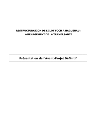 Restructuration de l'Ilot ''Foch'' à HAGUENAU - Avant-projet définitif