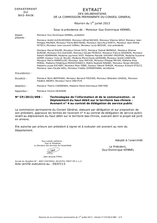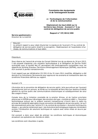 Déploiement du haut débit sur le territoire bas-rhinois - Avenant n° 4 au contrat de délégation de service public