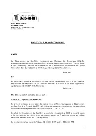 Travaux au collège de NIEDERBRONN-LES-BAINS - Protocole transactionnel avec la Société ''Kayser Isol Plâtreries''