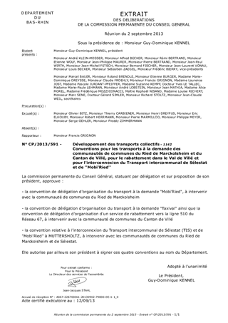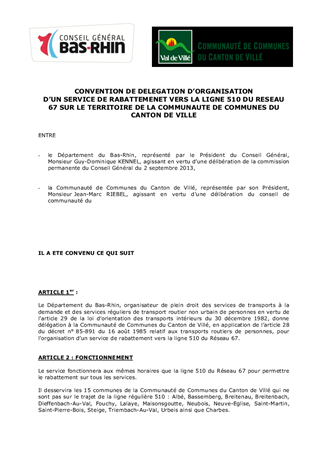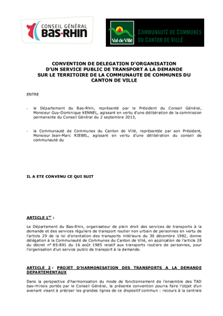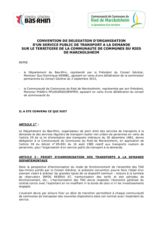 Conventions pour les transports à la demande des communautés de communes du Ried de Marckolsheim et du Canton de Villé, pour le rabattement dans le Val de Villé et pour l'interconnexion du Transport intercommunal de Sélestat et de ''Mobi'Ried''
