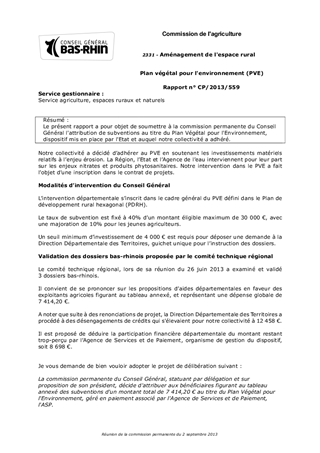 Le présent rapport a pour objet de soumettre à la commission permanente du Conseil Général l'attribution de subventions au titre du Plan Végétal pour l'Environnement, dispositif mis en place par l'Etat et auquel notre collectivité a adhéré.