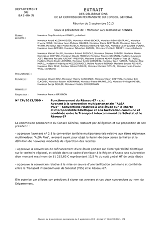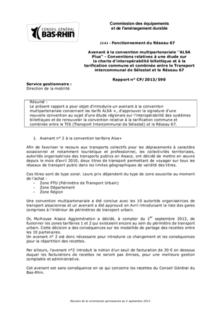 Le présent rapport a pour objet d'introduire un avenant à la convention mutlipartenariale concernant les tarifs ALSA +, d'approuver la signature d'une nouvelle convention au sujet d'une étude régionale sur l'interopérabilité des systèmes billettiques et de renouveler la convention relative à la tarification commune et combinée entre le TIS (Transport Intercommunal de Sélestat) et le Réseau 67.