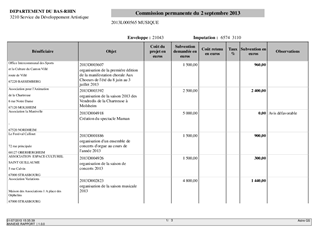 Répartition de subventions dans le domaine de la création et de la diffusion culturelles