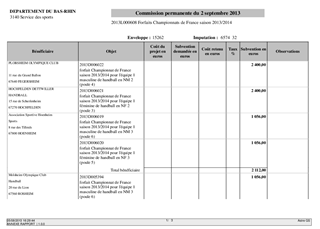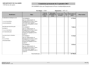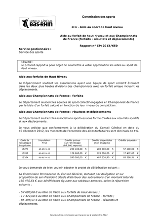 Le présent rapport a pour objet de soumettre à votre approbation les aides au sport de Haut niveau.