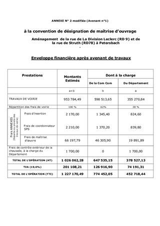 Le présent rapport vise à proposer un avenant à la convention de désignation de maîtrise d'ouvrage pour l'aménagement de la RD 9 dans la traversée de PETERSBACH, en vue de prendre en compte des travaux supplémentaires de chaussée qui sont à la charge du Département.