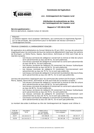 Le présent rapport vise à proposer l'attribution, aux communes et organismes figurant sur la liste annexée, des subventions pour la réalisation de travaux connexes à l'aménagement foncier.