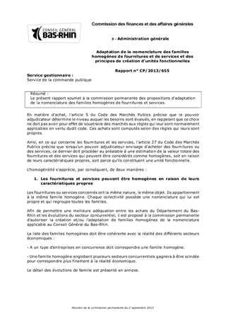 Le présent rapport soumet à la commission permanente des propositions d'adaptation de la nomenclature des familles homogènes de fournitures et services.