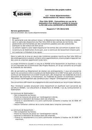 Plan Vélo 2020 - Conventions en vue de la réalisation d'un itinéraire cyclable le long de la RD 468 entre AUENHEIM et SESSENHEIM