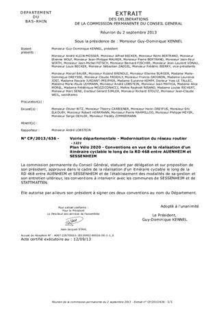 En partenariat avec des acteurs locaux, le Département réalise des itinéraires cyclables dans le cadre des dispositions du Plan Vélo 2020 et des contrats de territoires. Ces partenariats sont formalisés par des conventions passées avec des collectivités publiques ou des acteurs de droit privé. Le présent rapport a pour objet d'approuver les termes des conventions à passer avec la commune de Stattmatten d'une part, avec la commune de Sessenheim d'autre part, et à autoriser le Président à les signer.