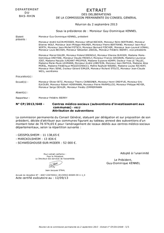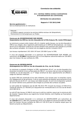 Le présent rapport concerne les centres médico-sociaux de Geispolsheim, Marckolsheim et Schweighouse sur Moder.