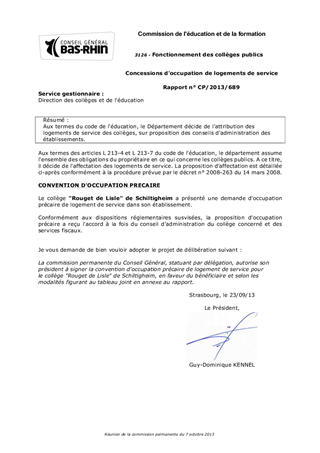 Aux termes du code de l'éducation, le Département décide de l'attribution des logements de service des collèges, sur proposition des conseils d'administration des établissements.