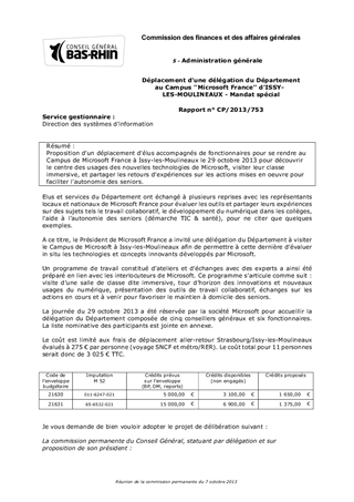 Proposition d'un déplacement d'élus accompagnés de fonctionnaires pour se rendre au Campus de Microsoft France à Issy-les-Moulineaux le 29 octobre 2013 pour découvrir le centre des usages des nouvelles technologies de Microsoft, visiter leur classe immersive, et partager les retours d'expériences sur les actions mises en oeuvre pour faciliter l'autonomie des seniors.