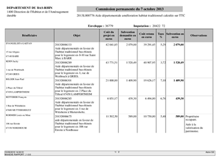Le présent rapport concerne la demande d'aide financière de propriétaires privés occupants et bailleurs dans le cadre de la politique volontariste du Département en faveur de l'habitat traditionnel bas-rhinois et de l'amélioration de l'habitat privé, en complément des subventions de l'ANAH (agence nationale de l'habitat). A ce titre, 16 dossiers sont présentés dans les deux annexes du rapport.