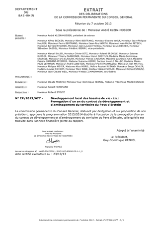 Prorogation d'un an du contrat de développement et d'aménagement du territoire du Pays d'Erstein