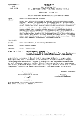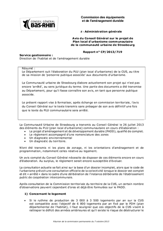 Avis du Conseil Général sur le projet de Plan local d'urbanisme communautaire de la communauté urbaine de Strasbourg