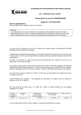 La restauration des mares contribue à la réalisation des objectifs de maintien de la biodiversité poursuivis par le Schéma Départemental des Espaces Naturels dont s'est doté le Département dans le cadre de sa politique des espaces naturels sensibles.