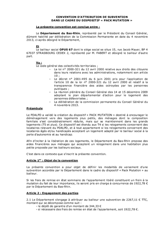 Mise en oeuvre du dispositif ''Pack Mutation'' visant à libérer de grands logements locatifs sociaux sous-occupés par des ménages de composition familiale peu élevée