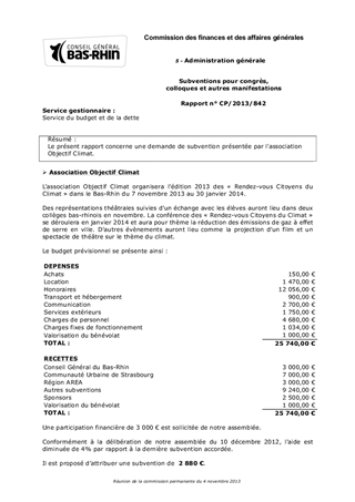 Le présent rapport concerne une demande de subvention présentée par l'association Objectif Climat.