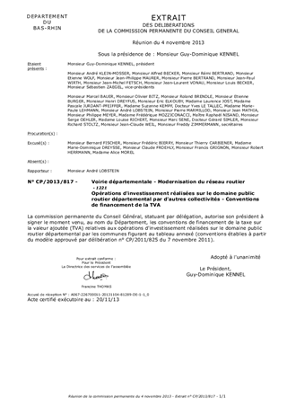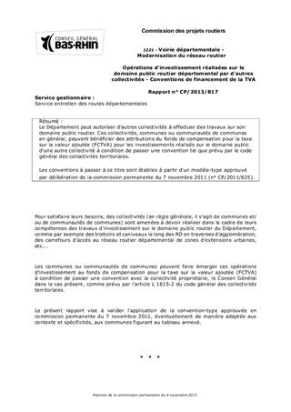 Le Département peut autoriser d'autres collectivités à effectuer des travaux sur son domaine public routier. Ces collectivités, communes ou communautés de communes en général, peuvent bénéficier des attributions du fonds de compensation pour la taxe sur la valeur ajoutée (FCTVA) pour les investissements réalisés sur le domaine public d'une autre collectivité à condition de passer une convention tel que prévu par le code général des collectivités territoriales. Les conventions à passer à ce titre sont établies à partir d'un modèle-type approuvé par délibération de la commission permanente du 7 novembre 2011 (n° CP/2011/825).