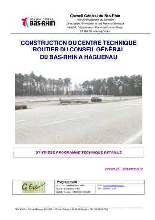 Reconstruction du Centre technique routier du Conseil Général à HAGUENAU - Programme technique détaillé