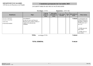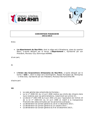Le plan de maîtrise budgétaire adopté par l'assemblée plénière le 24 juin prévoit, notamment, la mise en place de mesures liées à la remobilisation des entreprises pour renforcer l'accès à l'emploi des allocataires du RSA. Des démarches ont été engagées avec divers partenaires dont les Chambres consulaires et la Région, qui ont abouti à proposer, au Conseil Général réuni le 21 octobre 2013, une nouvelle offre de service à destination des entreprises, le ''Pacte de réussite'', permettant de favoriser le retour à l'emploi des allocataires du RSA. Dans ce cadre, l'Union des Corporations Artisanales du Bas-Rhin propose un appui à l'insertion professionnelle des bénéficiaires du RSA.