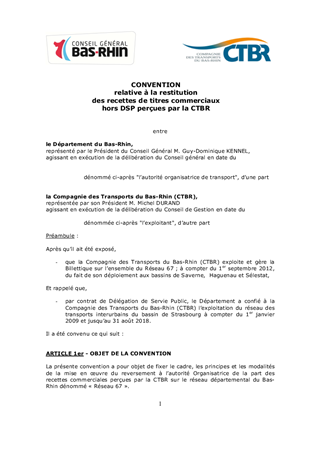 Le présent rapport a pour objectif de proposer la signature d'une convention avec la CTBR visant à la récupération des recettes encaissées par celle-ci et ayant trait à des voyages effectués sur des lignes situées en dehors du périmètre de la délégation de service public.