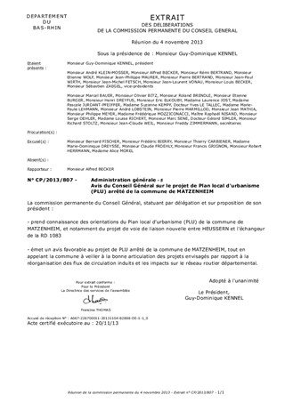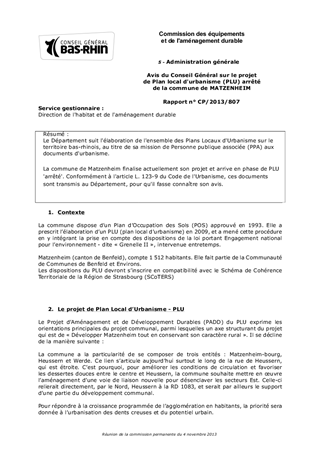 Avis du Conseil Général sur le projet de Plan local d'urbanisme (PLU) arrêté de la commune de MATZENHEIM