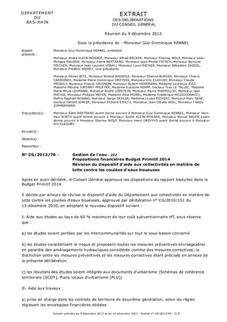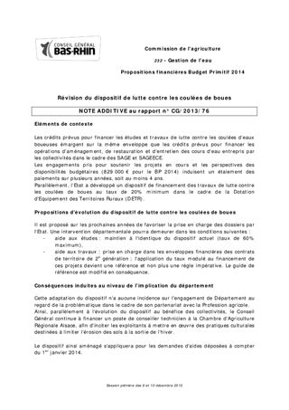Propositions financières Budget Primitif 2014 Révision du dispositif d'aide aux collectivités en matière de lutte contre les coulées d'eaux boueuses