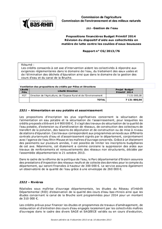 Les crédits consacrés à cet axe d'intervention aident les collectivités à répondre aux exigences réglementaires dans le domaine de l'eau, du traitement des eaux usées et de l'élimination des déchets d'épuration ainsi que dans le domaine de la gestion des cours d'eau et du canal de la Bruche.