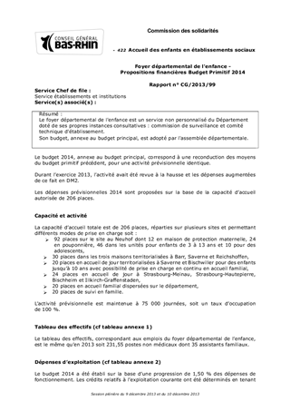 Foyer départemental de l'enfance - Propositions financières Budget Primitif 2014