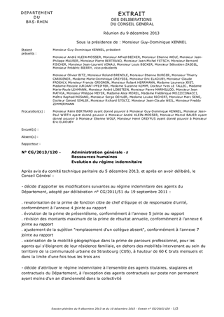 Après trois années de fonctionnement du nouveau régime indemnitaire, l'enquête ' travailler ensemble au CG67 ' réalisée en 2012 a mis en lumière la nécessité de réaliser un bilan afin d'en consolider les principes et d'en améliorer certaines modalités. La présente délibération a pour objectif d'apporter les ajustements nécessaires à plusieurs composantes du régime indemnitaire.