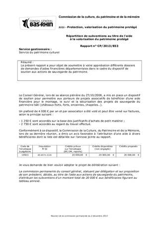 Le présent rapport a pour objet de soumettre à votre approbation différents dossiers de demandes d'aides financières départementales dans le cadre du dispositif de soutien aux actions de sauvegarde du patrimoine.
