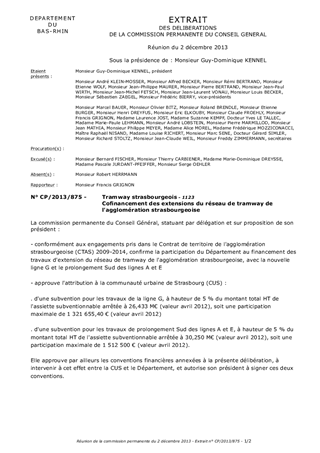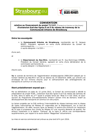 Cofinancement des extensions du réseau de tramway de l'agglomération strasbourgeoise