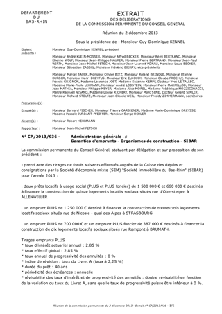 Garanties d'emprunts - Organismes de construction - SIBAR