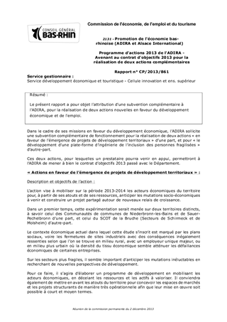 Le présent rapport a pour objet l'attribution d'une subvention complémentaire à l'ADIRA, pour la réalisation de deux actions nouvelles en faveur du développement économique et de l'emploi.