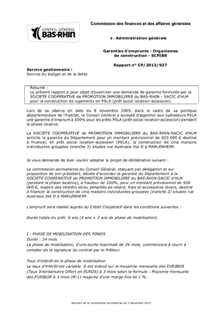 Le présent rapport a pour objet d'examiner une demande de garantie formulée par la SOCIETE COOPERATIVE de PROMOTION IMMOBILIERE du BAS-RHIN - SACIC d'HLM pour la construction de logements en PSLA (prêt social location-accession).