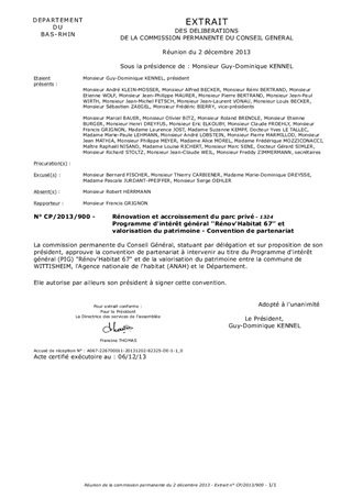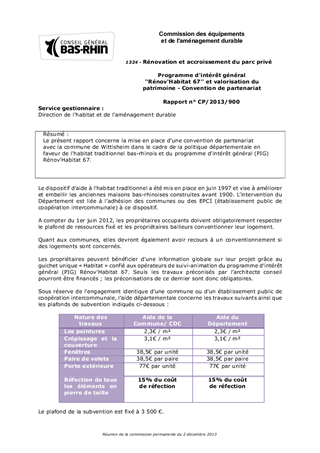 Le présent rapport concerne la mise en place d'une convention de partenariat avec la commune de Wittisheim dans le cadre de la politique départementale en faveur de l'habitat traditionnel bas-rhinois et du programme d'intérêt général (PIG) Rénov'Habitat 67.