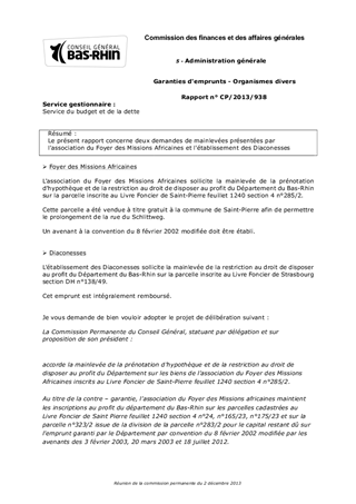 Le présent rapport concerne deux demandes de mainlevées présentées par l'association du Foyer des Missions Africaines et l'établissement des Diaconesses