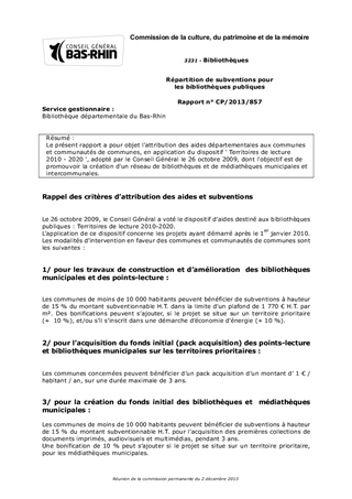 Le présent rapport a pour objet l'attribution des aides départementales aux communes et communautés de communes, en application du dispositif ' Territoires de lecture 2010 - 2020 ', adopté par le Conseil Général le 26 octobre 2009, dont l'objectif est de promouvoir la création d'un réseau de bibliothèques et de médiathèques municipales et intercommunales.