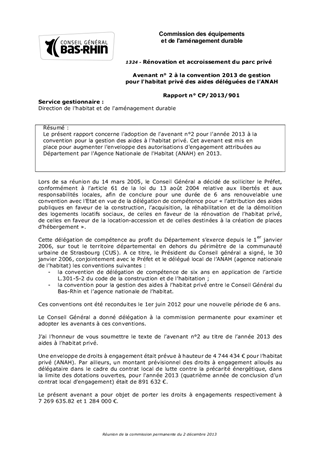 Le présent rapport concerne l'adoption de l'avenant n°2 pour l'année 2013 à la convention pour la gestion des aides à l'habitat privé. Cet avenant est mis en place pour augmenter l'enveloppe des autorisations d'engagement attribuées au Département par l'Agence Nationale de l'Habitat (ANAH) en 2013.