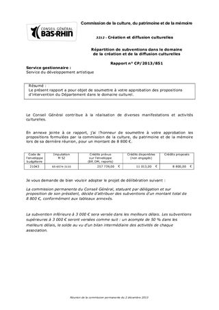 Le présent rapport a pour objet de soumettre à votre approbation des propositions d'intervention du Département dans le domaine culturel.