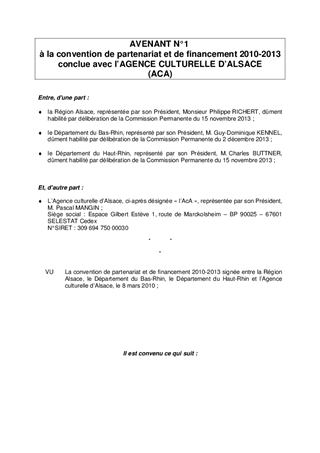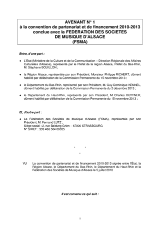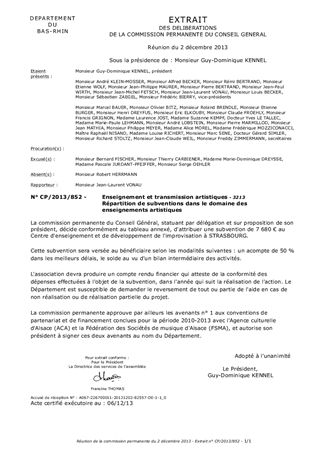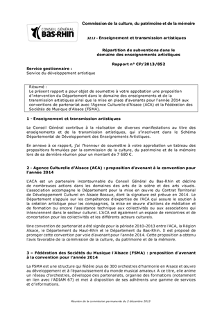Le présent rapport a pour objet de soumettre à votre appobation une proposition d'intervention du Département dans le domaine des enseignements et de la transmission artistiques ainsi que la mise en place d'avenants pour l'année 2014 aux conventions de partenariat avec l'Agence Culturelle d'Alsace (ACA) et la Fédération des Sociétés de Musique d'Alsace (FSMA).