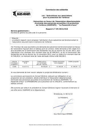 Subvention en faveur de l'Association départementale d'entraide des personnes accueillies à la protection de l'enfance (ADEPAPE) - ''La Passerelle d'azur''