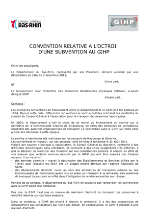 Subvention exceptionnelle au GIHP Alsace - Convention